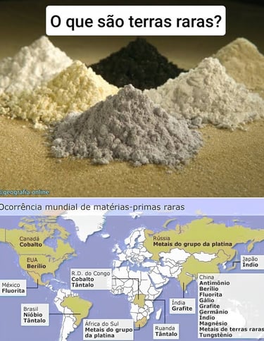 As terras raras são insumos estratégicos para tecnologias modernas e transição energética. Destacam-se: